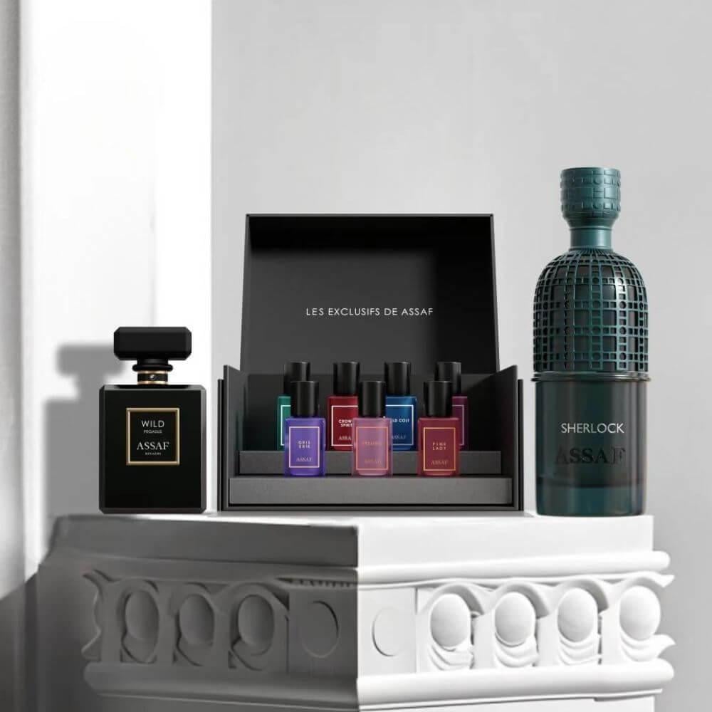 اسم المنتج: عرض عطر شيرلوك المميز من عساف - 200 مل + هدية عطر وايلد بيقاسوس 50 مل + صندوق عينات